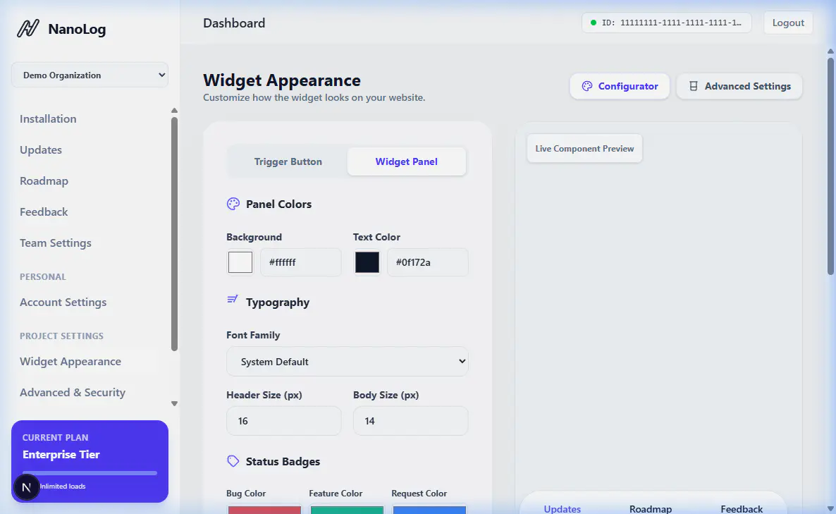 NanoLog strives to provide beautiful, modern defaults for its widget and changelog. However, we understand that Enterprise and Scale customers often have strict brand guidelines and require pixel-perfect control over every third-party component embedded on their platform.
